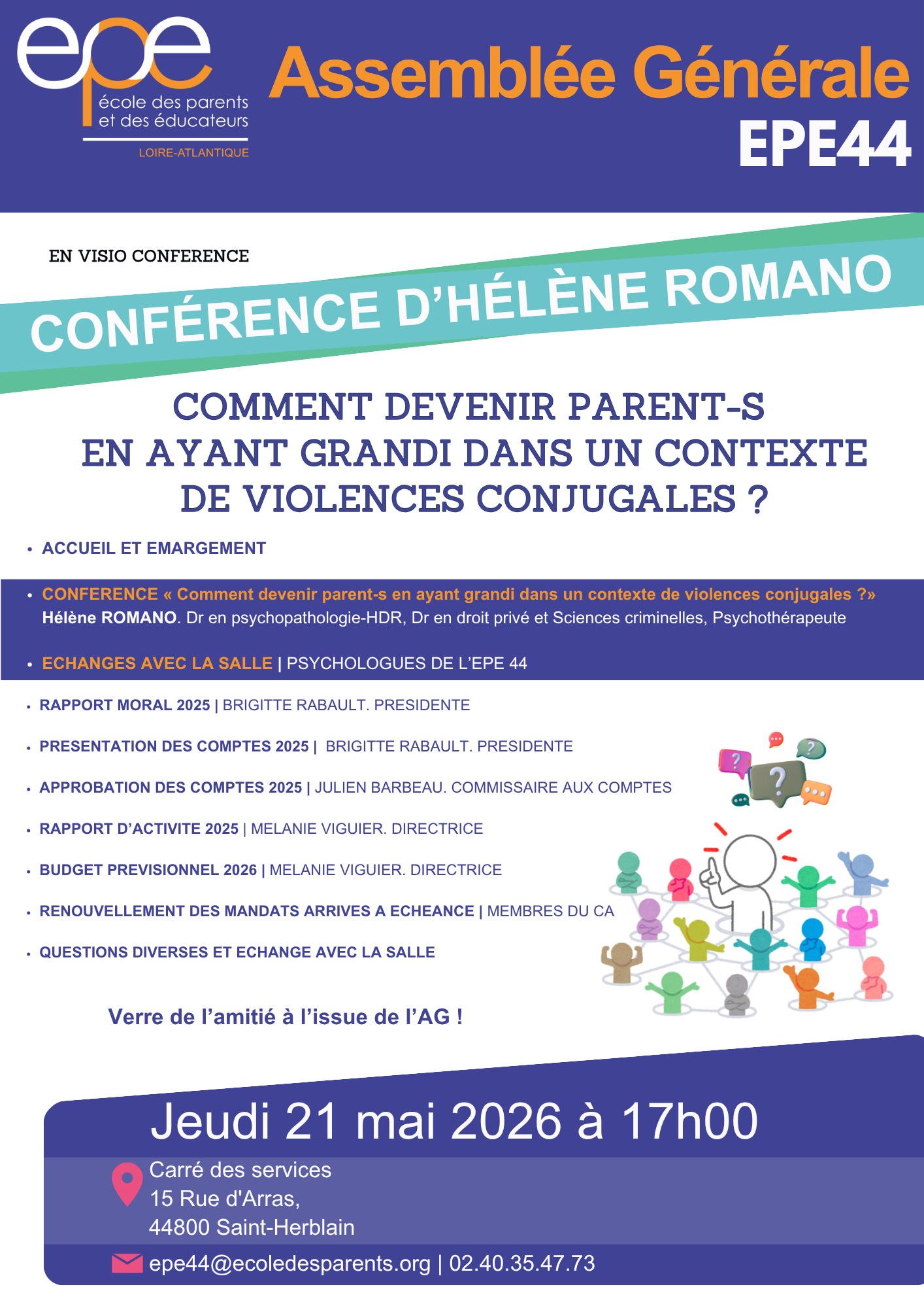Nous vous informons que le secrétariat de l’École des Parents et des Éducateurs de Loire Atlantique sera exceptionnellement fermé du jeudi 19 au vendredi 20 mars 2026 inclus.